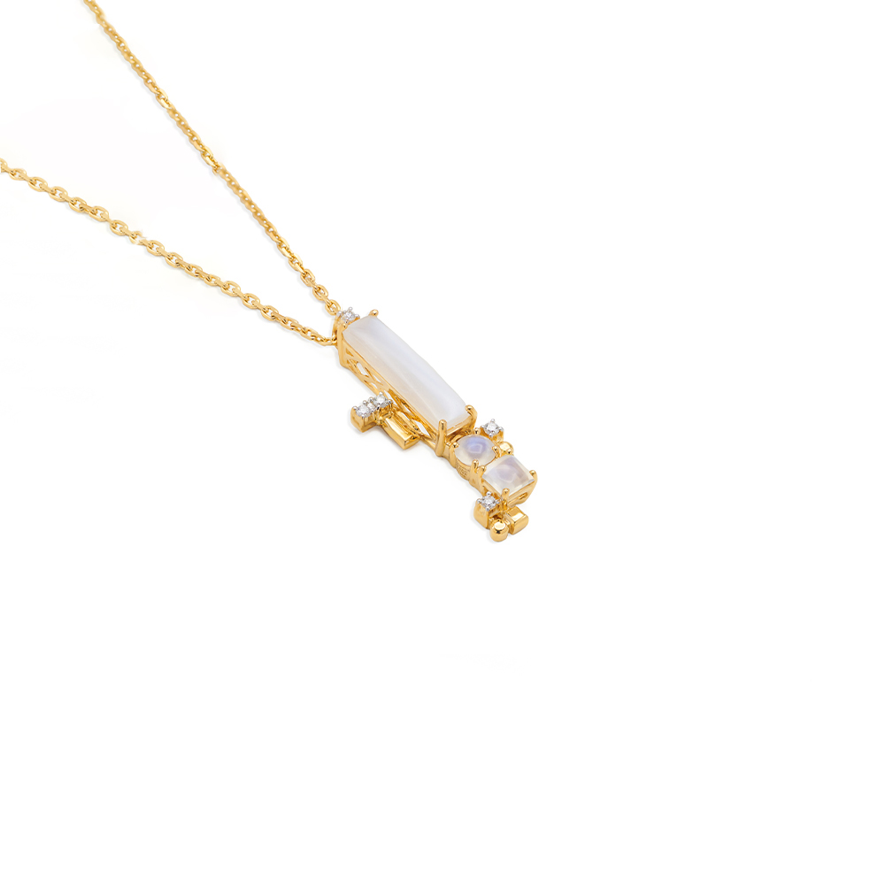 18K Yellow Gold (9.605 grams), VS, G Color Diamond (0.15 carat), and Moonstone (1.166 grams) approximately.