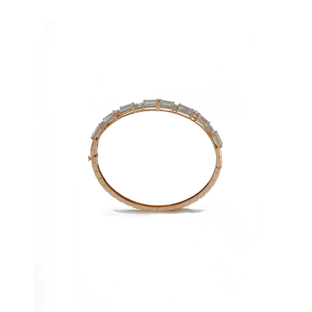 18K Rose Gold (12.31 grams), VS, G Color Diamond (0.42 carat), and Aquamarine (1.272 grams) approximately.