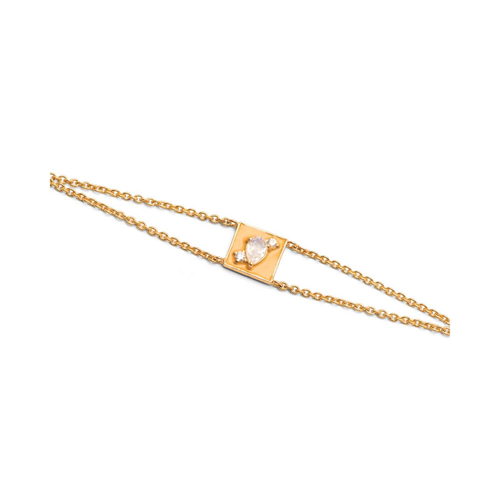 ذهب أصفر عيار 22 (3.94 جرام)، مرصع بالألماس درجة ڤي اس، اللون جي (0.06 قيراط)، واكوامارين (0.083 جرام) تقريبًا.