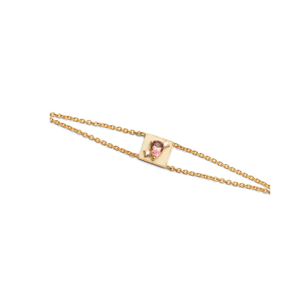 ذهب أصفر عيار 22 (3.94 جرام)، مرصع بالألماس درجة ڤي اس، اللون جي (0.06 قيراط)، وتورمالين وردي (0.083 جرام) تقريبًا.
