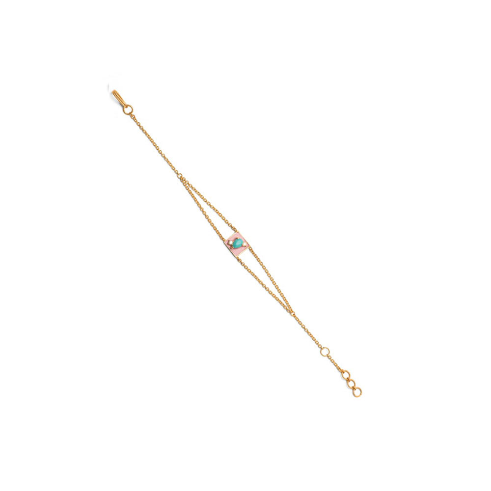 ذهب أصفر عيار 22 (3.94 جرام)، مرصع بالألماس درجة ڤي اس، اللون جي (0.06 قيراط)، وفيروز (0.083 جرام) تقريبًا.