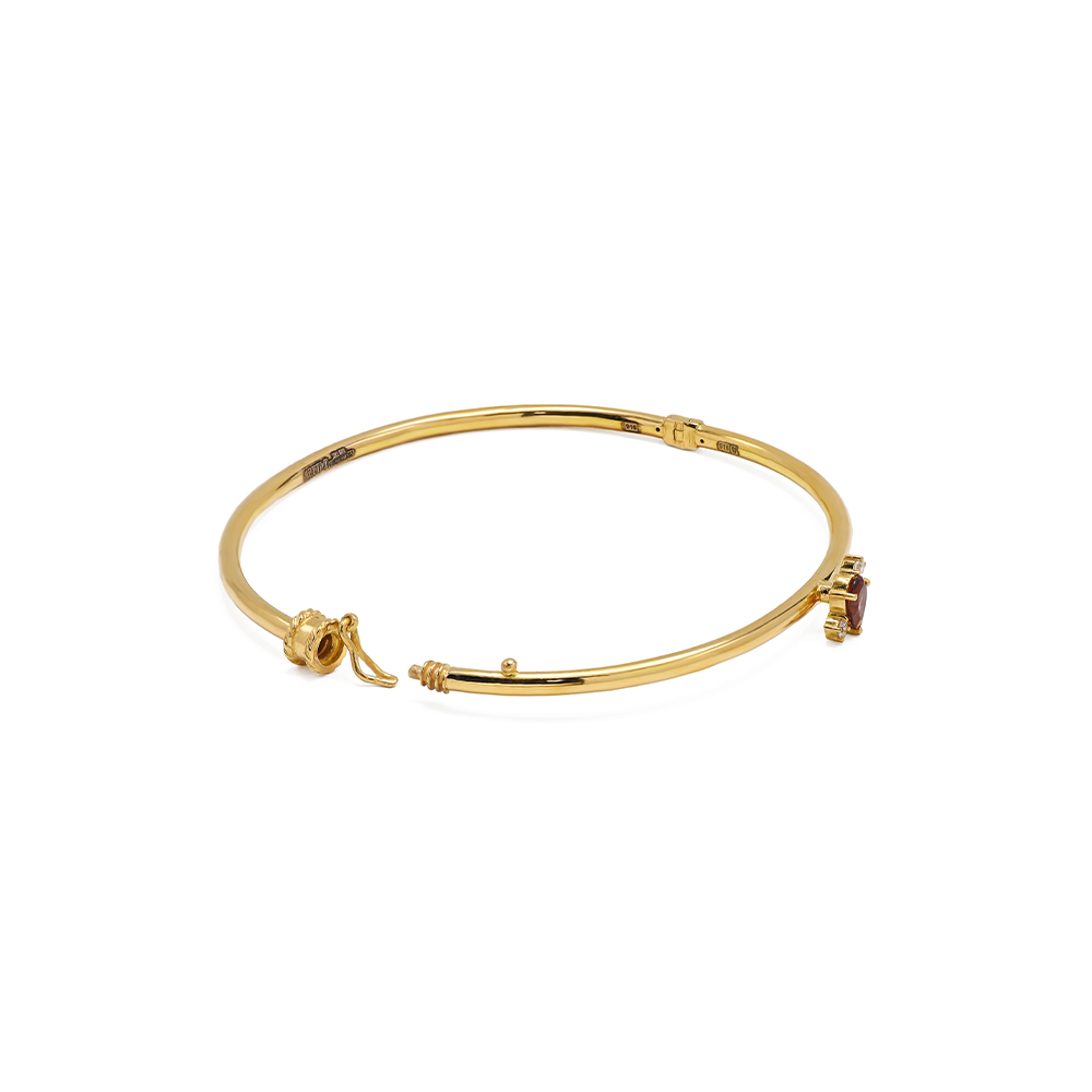 ذهب أصفر عيار 22 (8.303 جرام)، مرصع بالألماس درجة ڤي اس، اللون جي (0.07 قيراط)، وعقيق (0.083 جرام) تقريبًا.