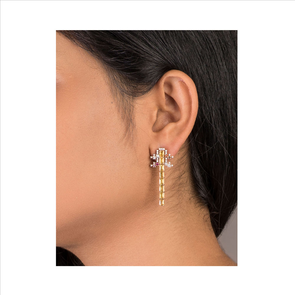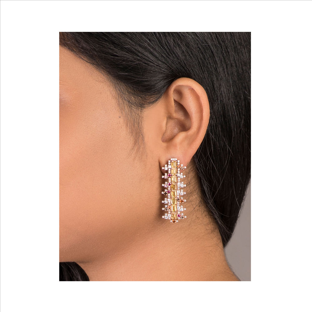 ذهب روز عيار 18 (12.07 جرام)، مرصع بالألماس درجة ڤي اس، اللون جي (4.76 قيراط)، وسفاير أصفر (2.97 جرام) تقريبًا.