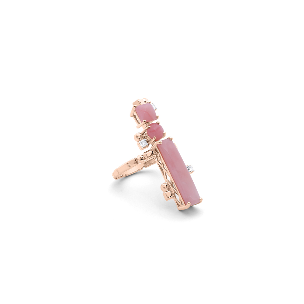 ذهب روز عيار 18 (6.299 جرام)، مرصع بالألماس درجة ڤي اس، اللون جي (0.12 قيراط)، وأوبال وردي (1.225 جرام) تقريبًا.