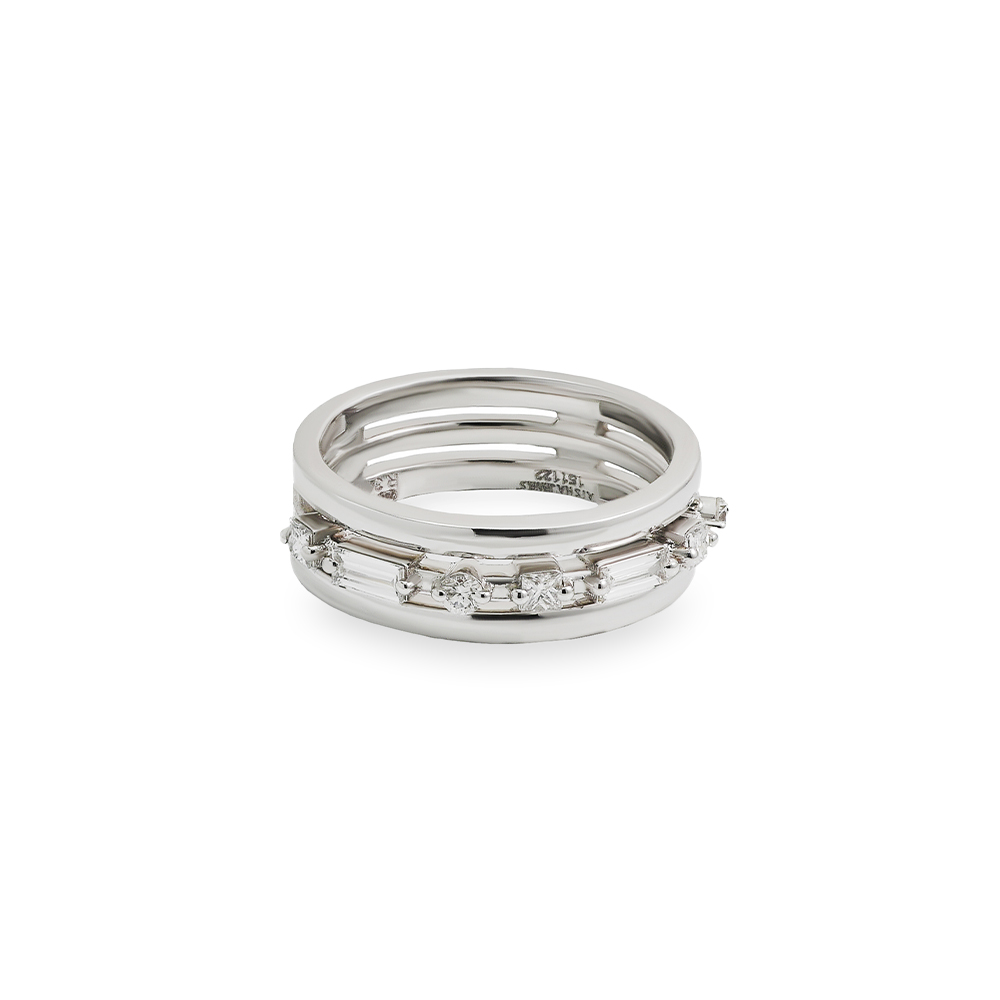 ذهب ابيض عيار 18 (4.203 جرام)، مرصع بالالماس درجة ڤي اس، اللون جي (0.43 قيراط) تقريبًا.