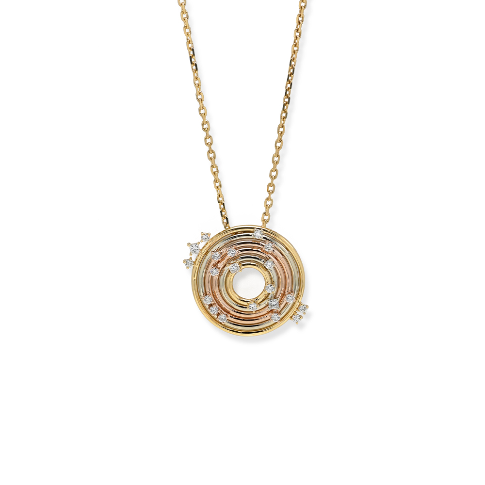 ذهب روز، ذهب أبيض، وذهب أصفر عيار 18 (15.76 جرام)، مرصع بالألماس درجة ڤي اس، اللون جي (0.639 قيراط) تقريبًا.