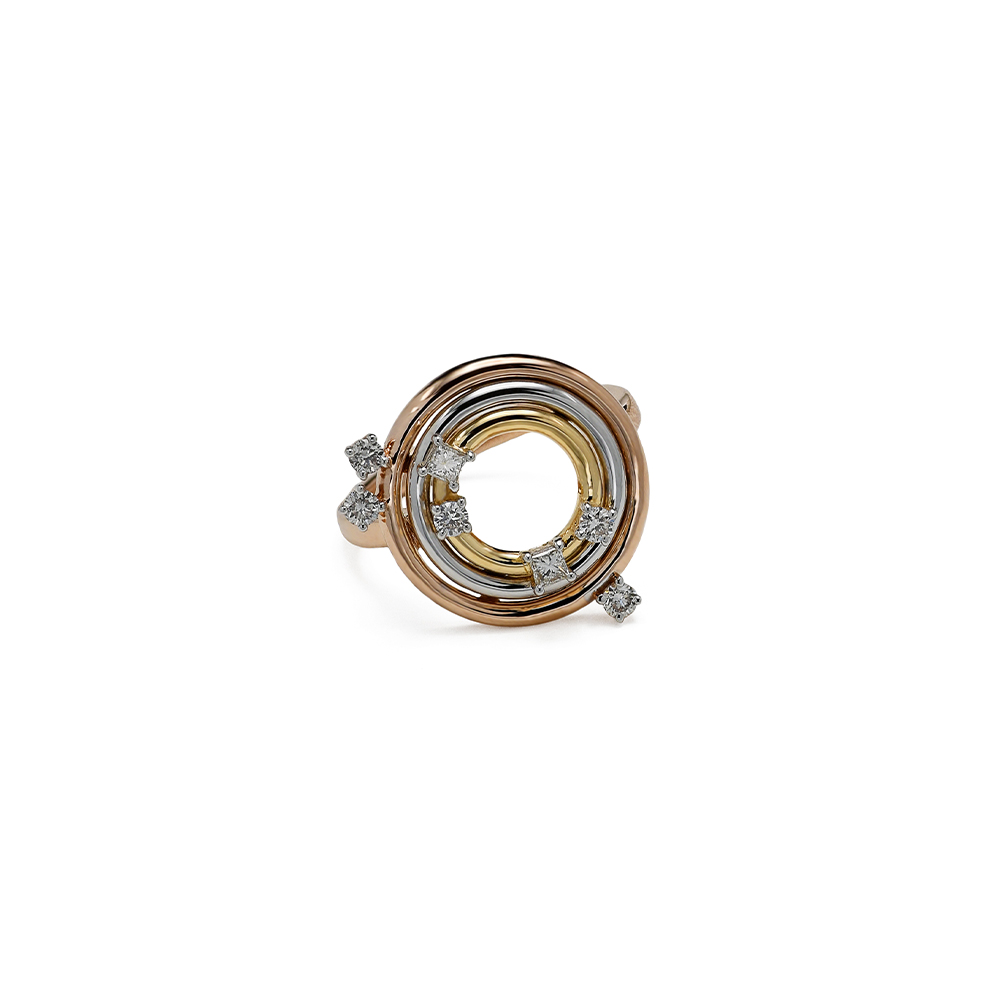 ذهب روز، ذهب أبيض، وذهب أصفر عيار 18 (4.25 جرام)، مرصع بالألماس درجة ڤي اس، اللون جي (0.21 قيراط) تقريبًا.